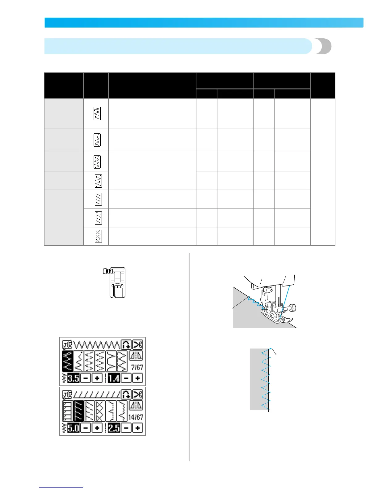Seven stitches can be used to sew overcasting stitches with zigzag foot "J".