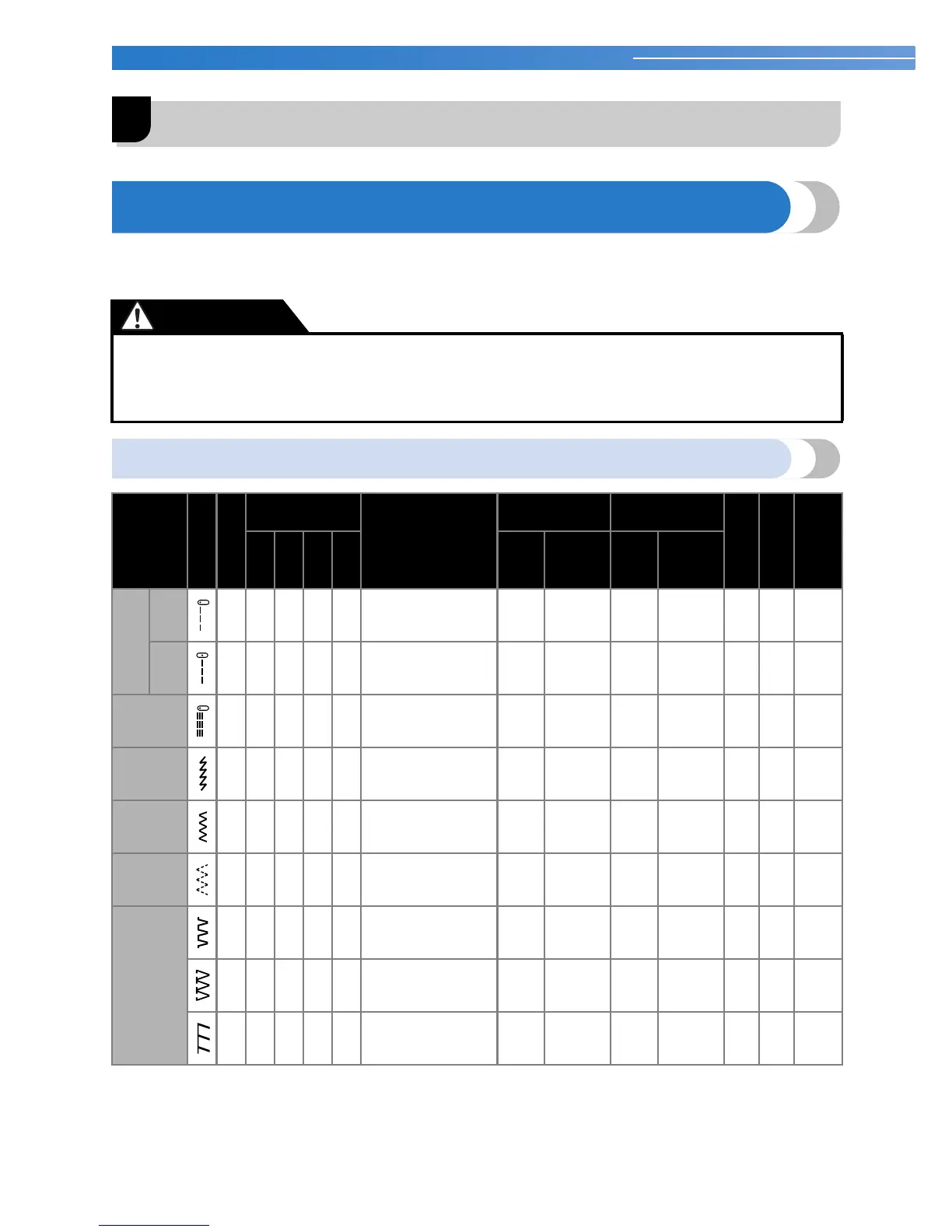 ● Select a stitch width of 5.0 mm (3/16 inch) or less, otherwise the needle may break or the machine may
