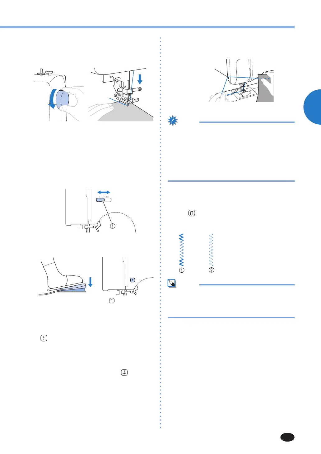 sews reinforcement stitches, 3 to 5 stitches on top of