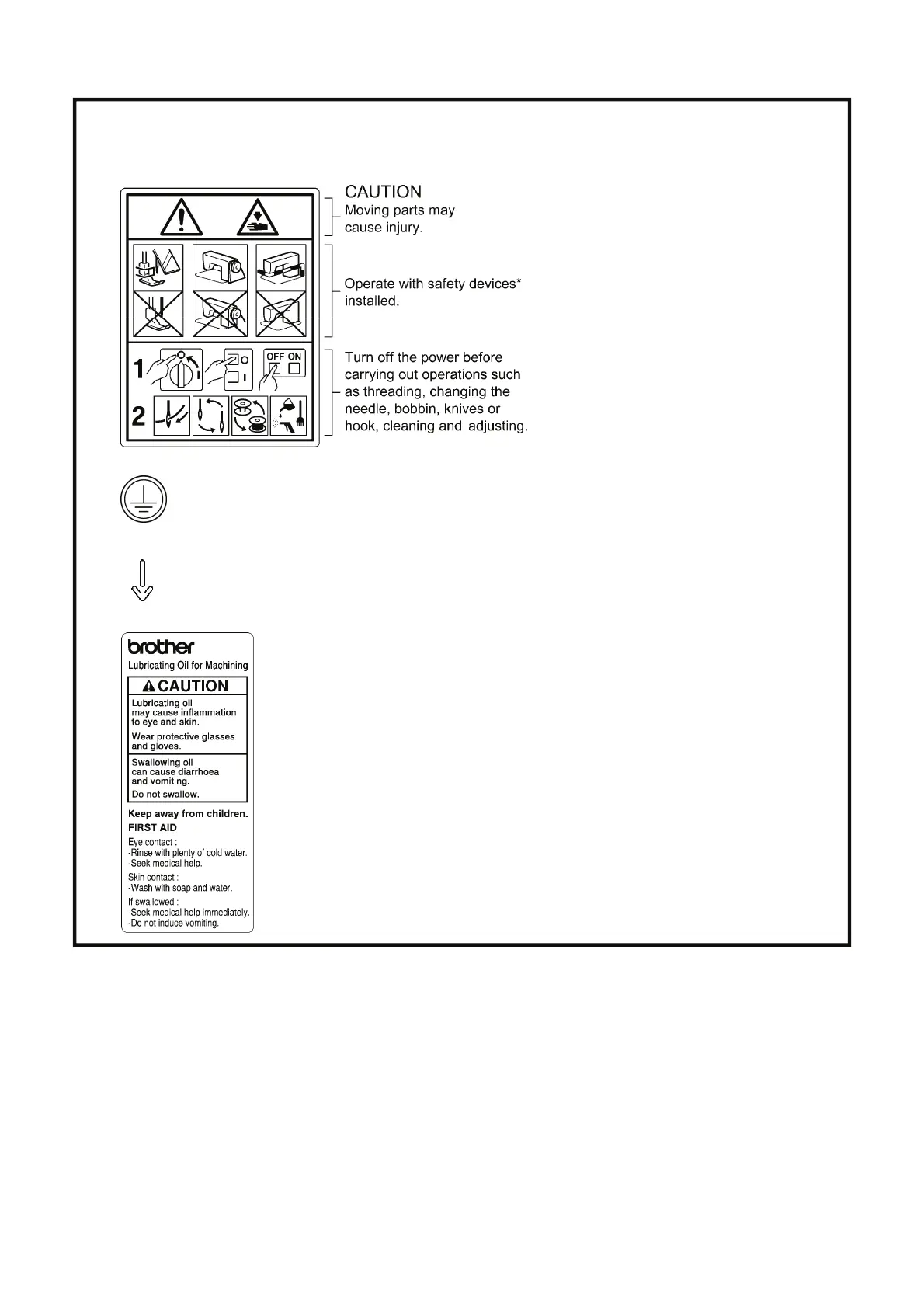 The following warning labels appear on the sewing machine.