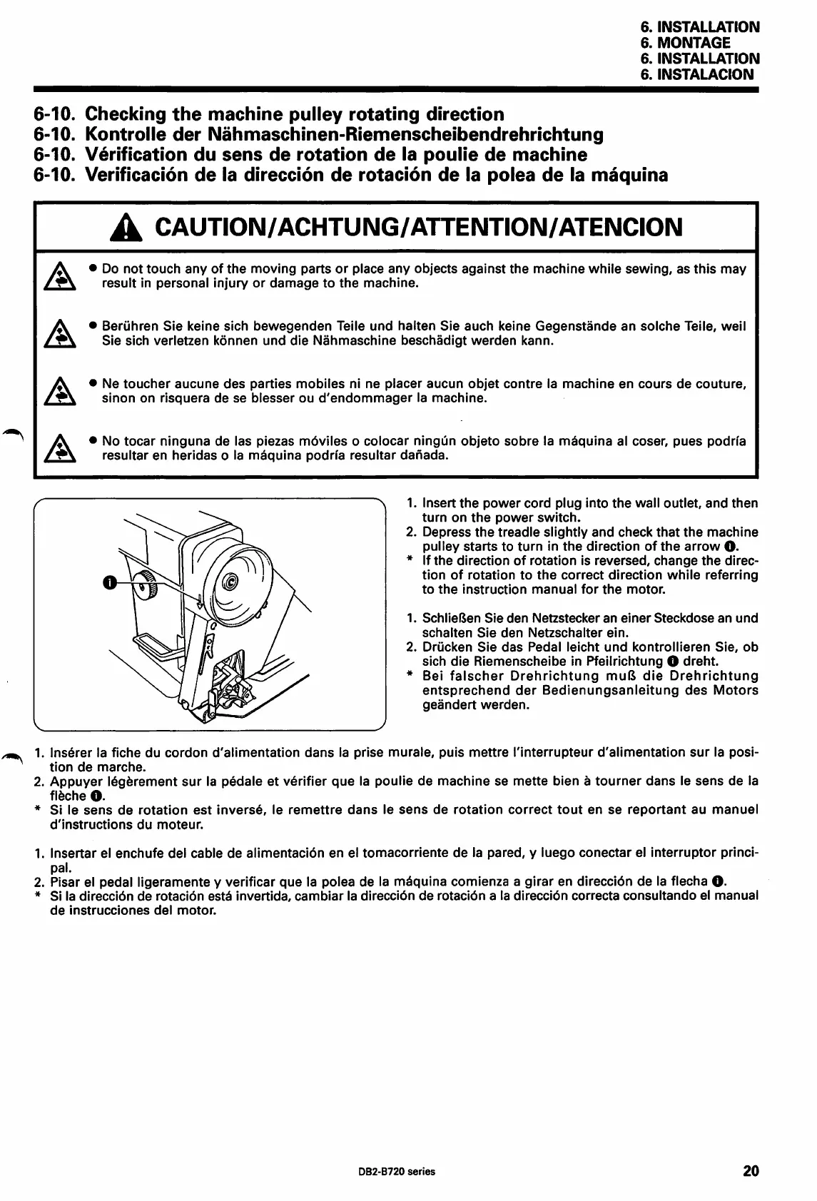 Brother DB2-B721 - Checking the Machine Pulley Rotating Direction; Verification du Sens de Rotation de la Poulie de Machine