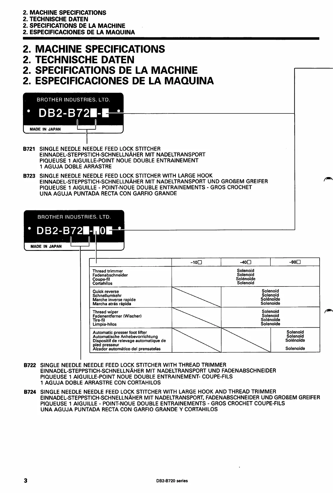 Brother DB2-B722 - Machine Specifications; Specifications de la Machine; Technische Daten