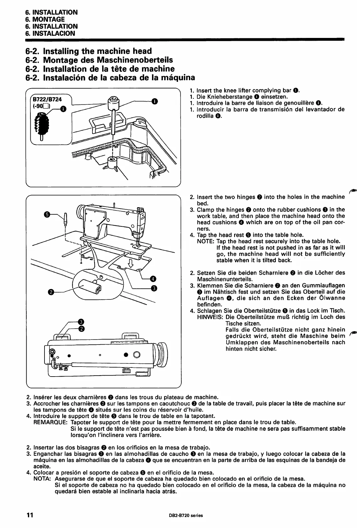 Brother DB2-B722 - Installing the Machine Head; Installation de la Tete de Machine