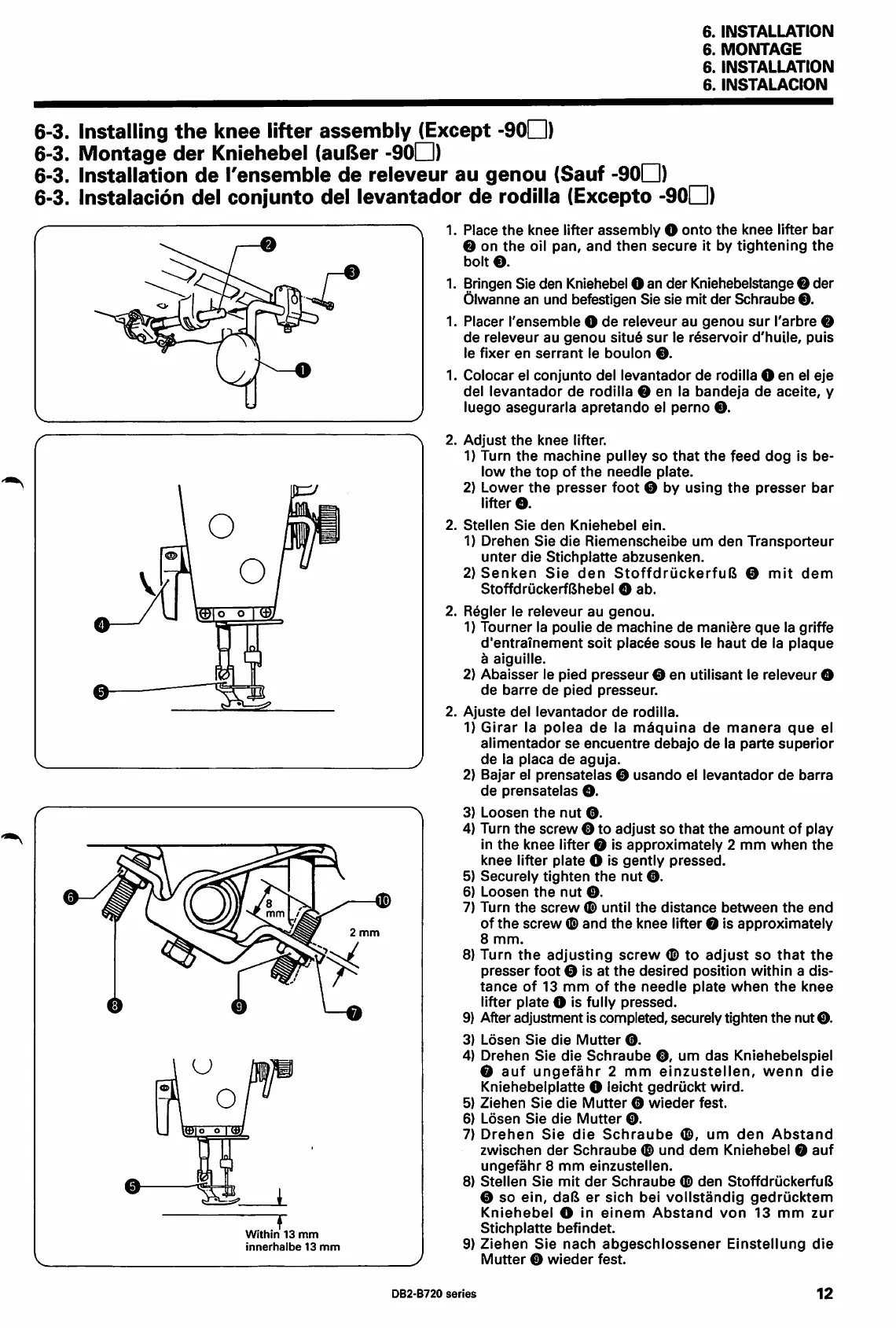 Brother DB2-B722 - Installing the Knee Lifter Assembly (Except -SOD); Installation de Iensemble de; Releveur Au Genou (Sauf -SOD)