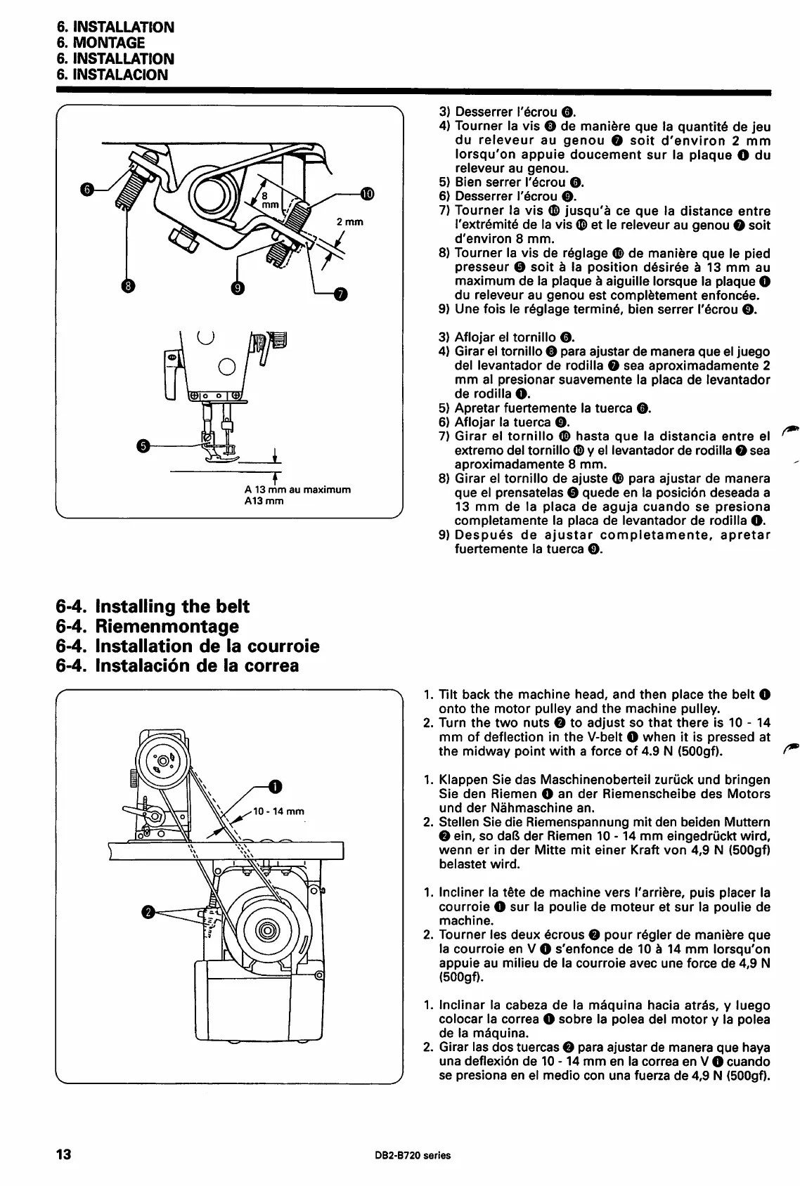 Brother DB2-B722 - Installing the Belt; Installation de la Courroie