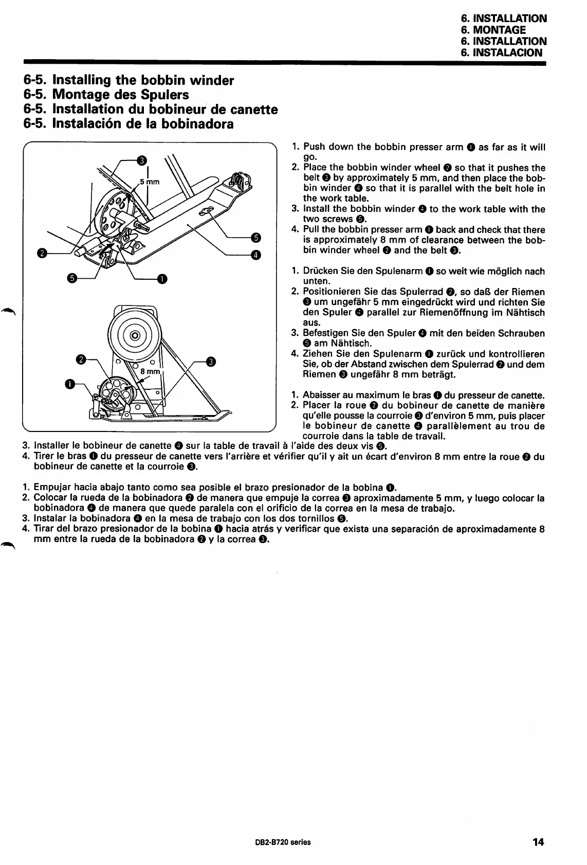 Brother DB2-B722 - Installing the Bobbin Winder; Montage des Spulers; Installation du Bobineur de Canette