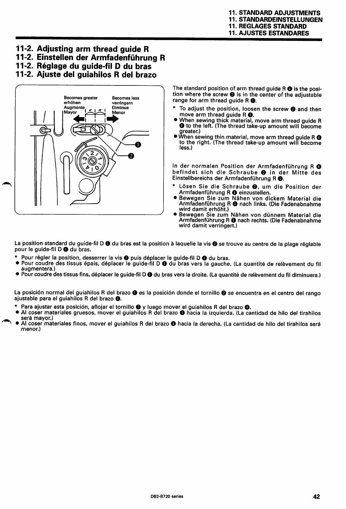 tissus fins, deplacer le guide-fil DO du bras vers la droite. (Laquantite de relevement du fil diminuera.)