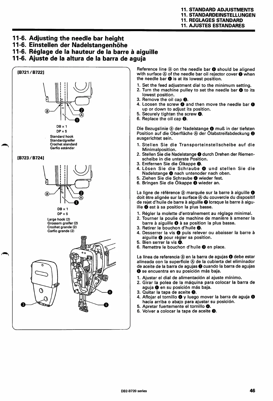 Brother DB2-B722 - Adjusting the Needle Bar Height; Einstellen der Nadelstangenhohe; Reglage de la Hauteur de la Barre E Aiguille