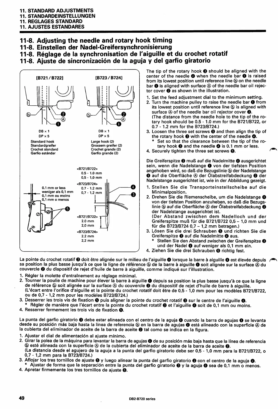 (L'6cart entre I'orifice d'aiguille et la pointe du crochet rotatif doit etre de 0,5
