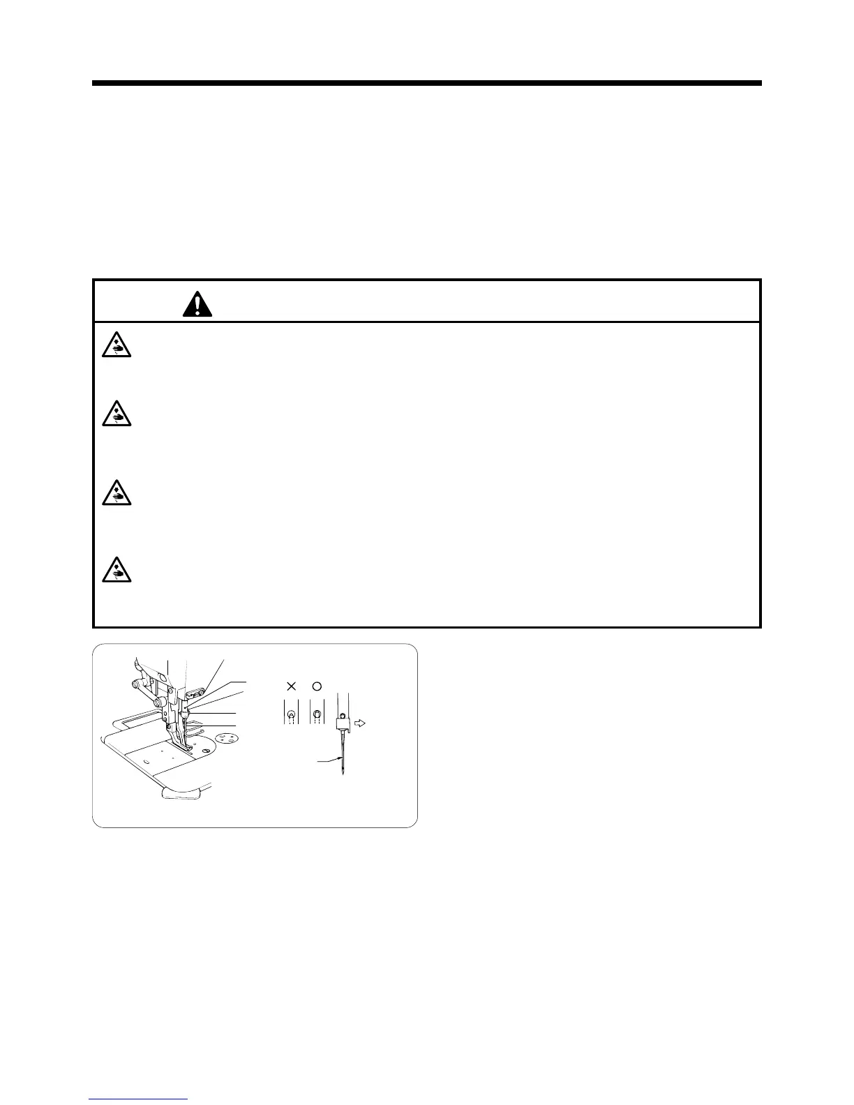 Turn off the power switch before installing the needle, otherwise the machine may operate if the treadle is