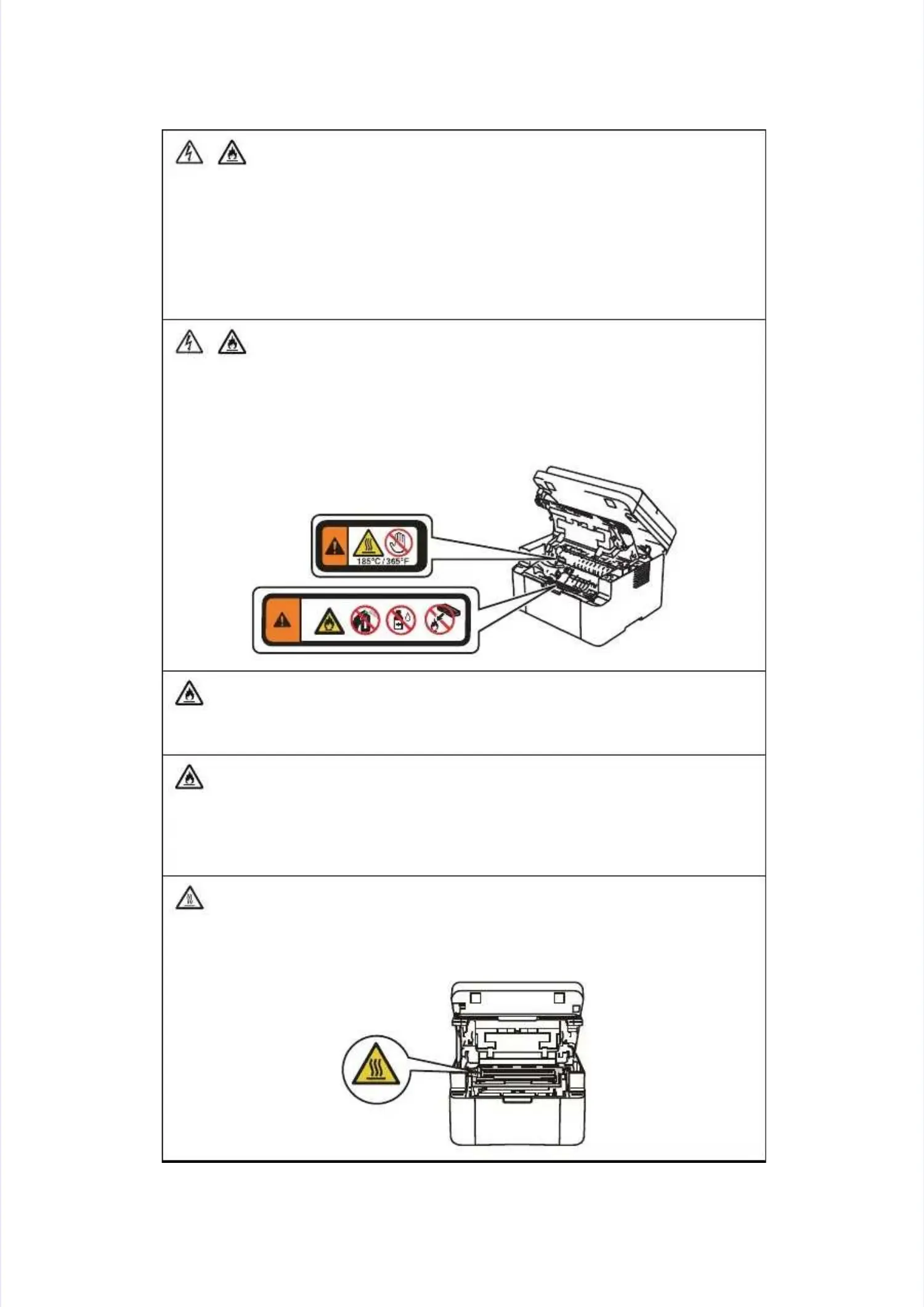 inside the product. Prolonged contact of the inside the product. Prolonged contact of the paper with the fuser unit could cause paper with the fuser unit could cause a fire.a fire.