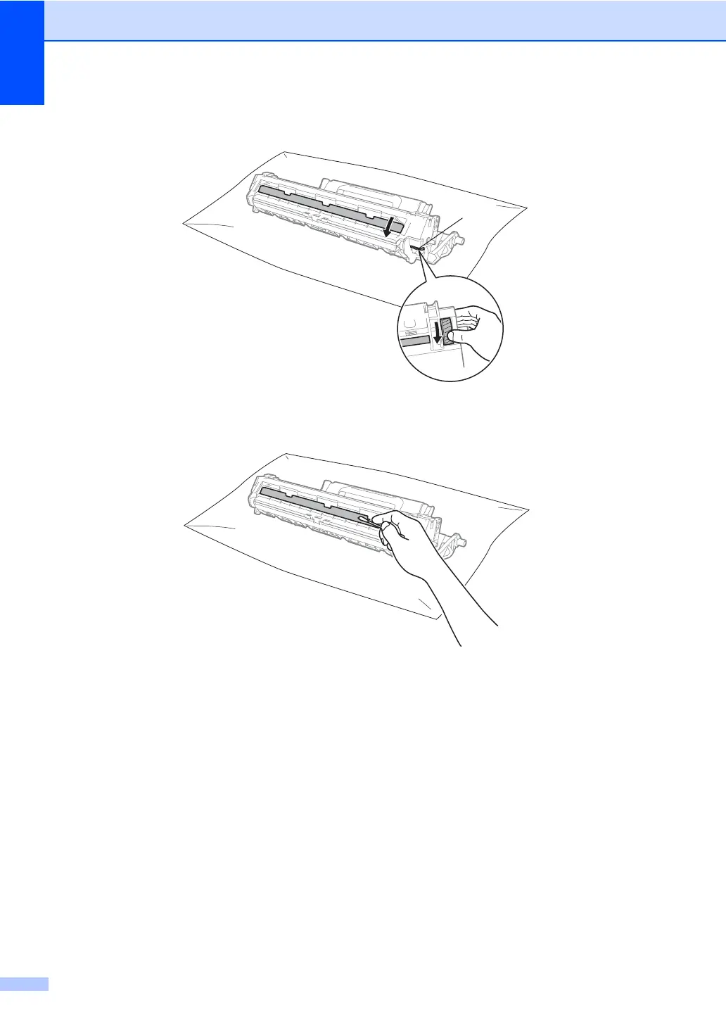 Wipe the surface of the drum gently with a dry cotton swab until the dust or glue on the