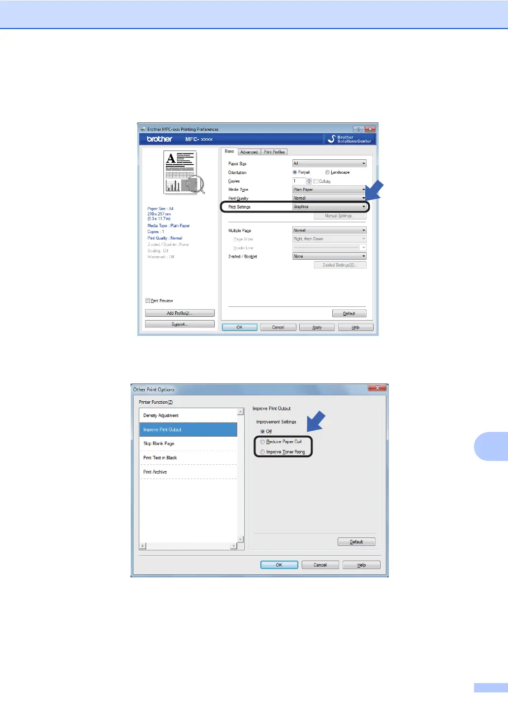 If the paper is curled or the toner is not fixed well on the paper, you can adjust these settings
