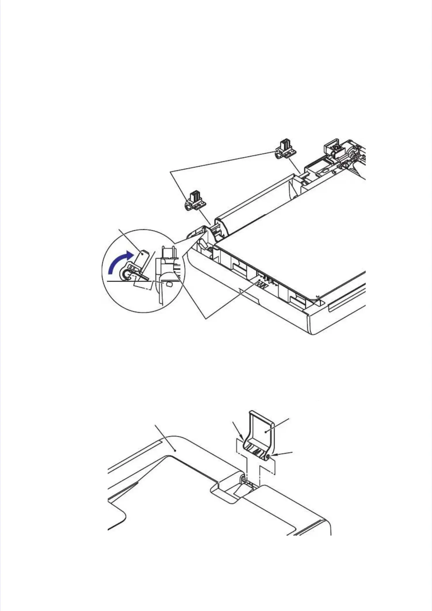 (1)(1) ReleaRelease the two bose the two bosses of thsses of the documee document stoppent stopper to remove ir to remove it from the ADt from the ADF unit.F unit.