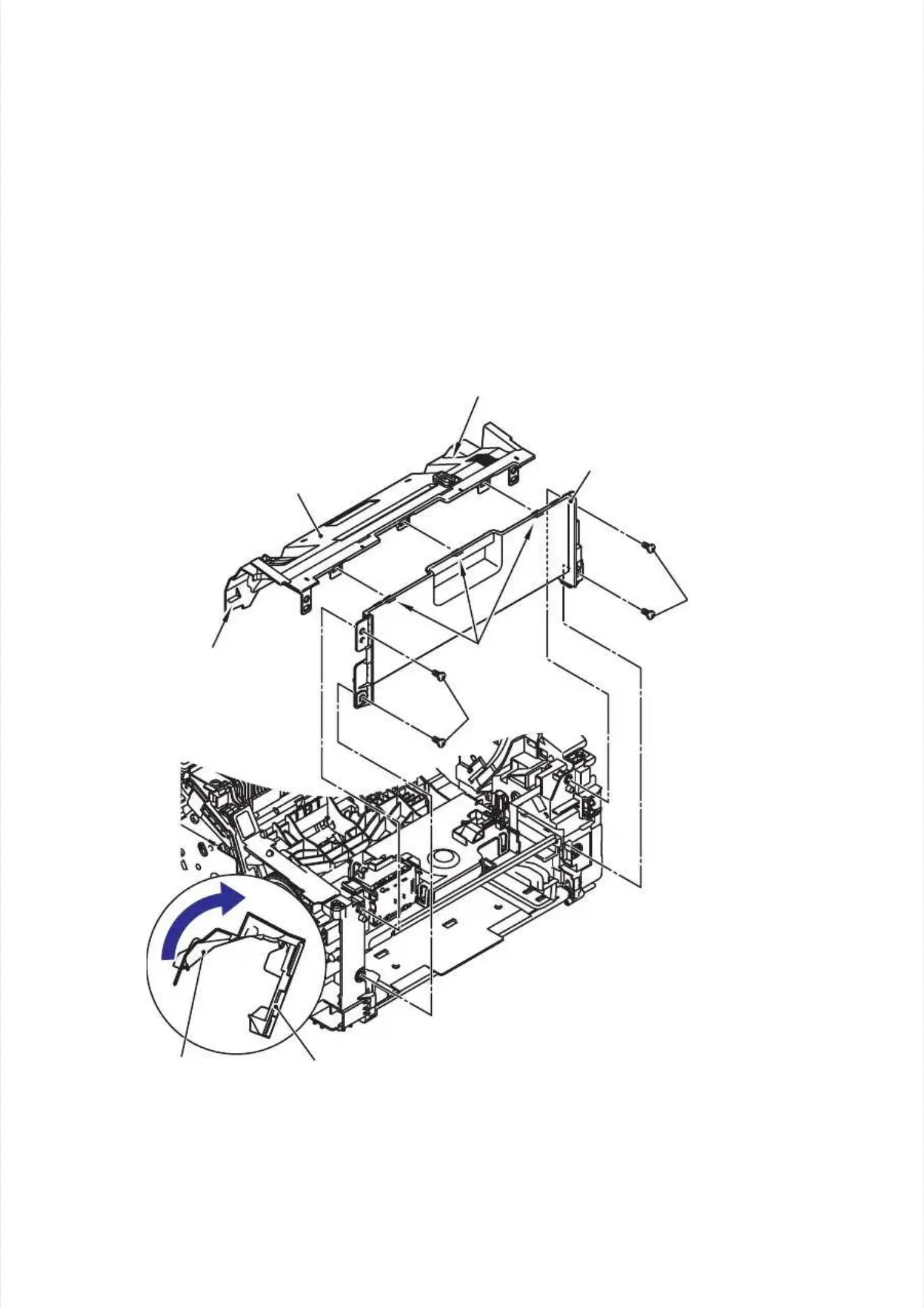 (2)(2) ReleaRelease the two hooks at thse the two hooks at the bottom of the lasee bottom of the laser unit coverr unit cover. Remove the la. Remove the laser unit covser unit coverer