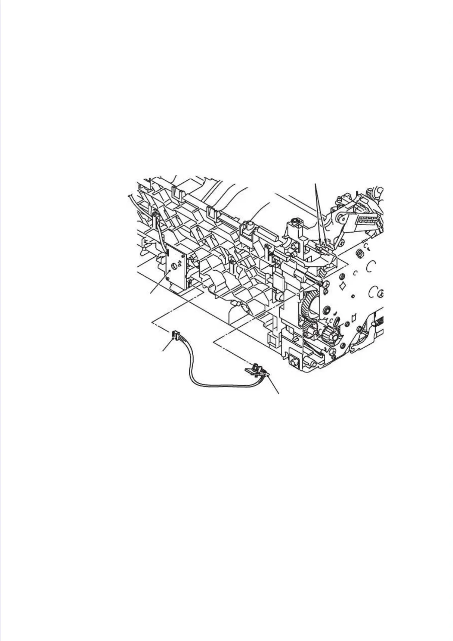 (1)(1) DiscoDisconnect the ejennect the eject sensor PCB harct sensor PCB harness from the pness from the paper feedaper feed/paper pr/paper printing posinting positionition