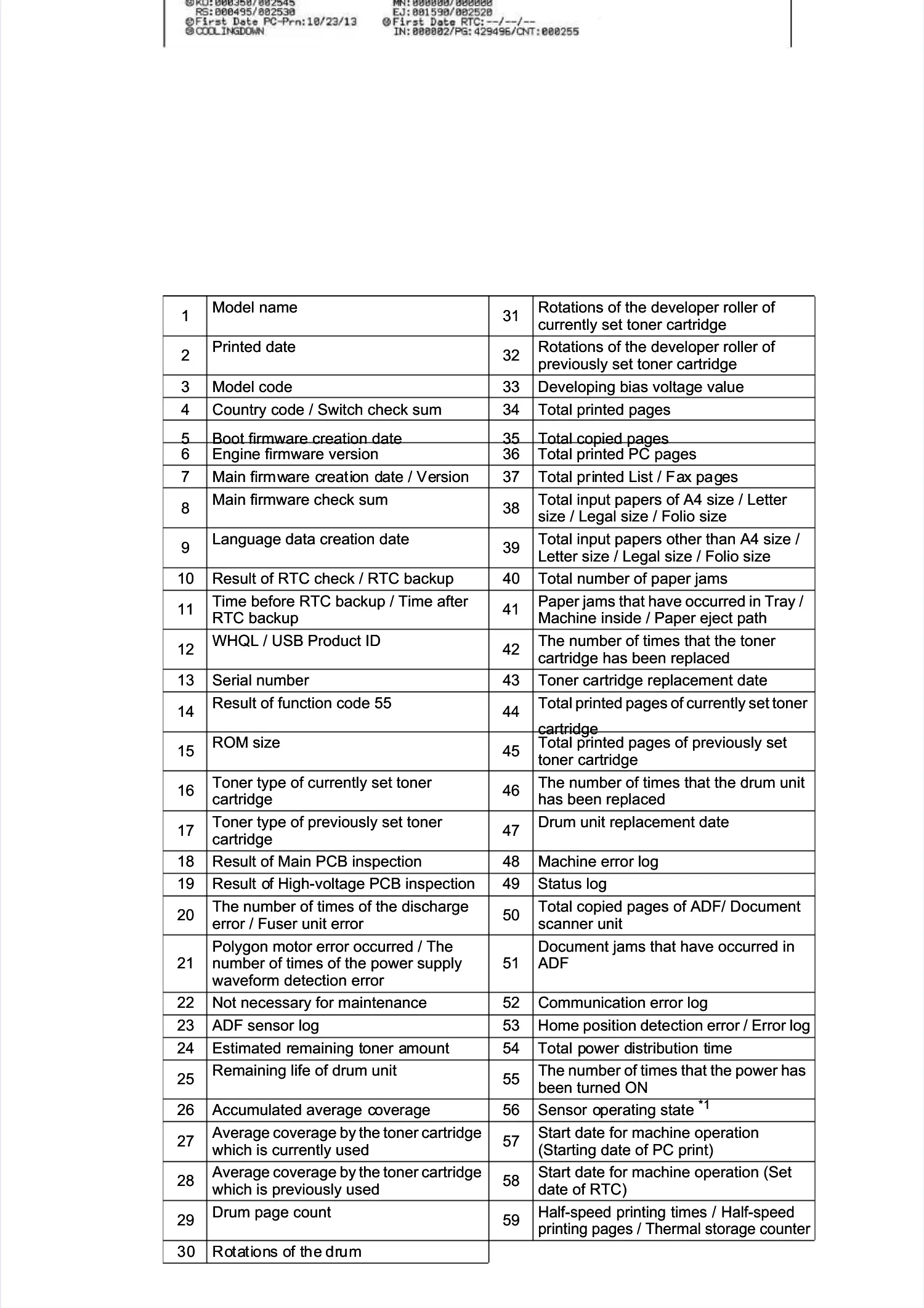 The number of times that the drum unitThe number of times that the drum unit