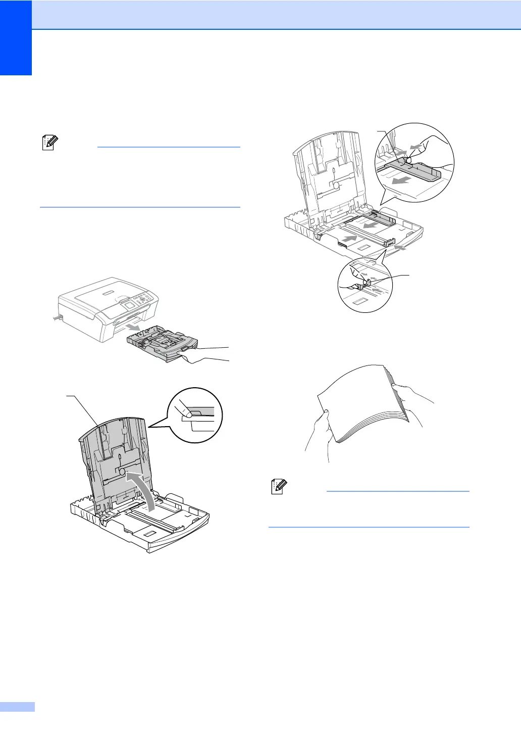 and paper length guide (2) to fit the