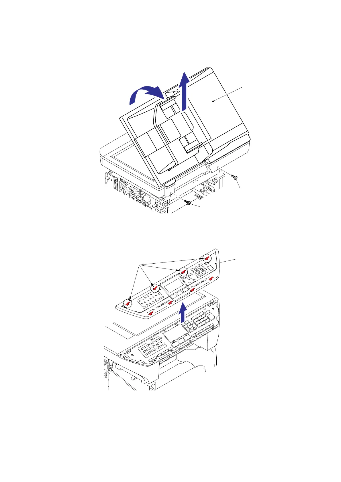(24) Remove the two bind B M4x12 Taptite screws, and then remove the Document scanner.