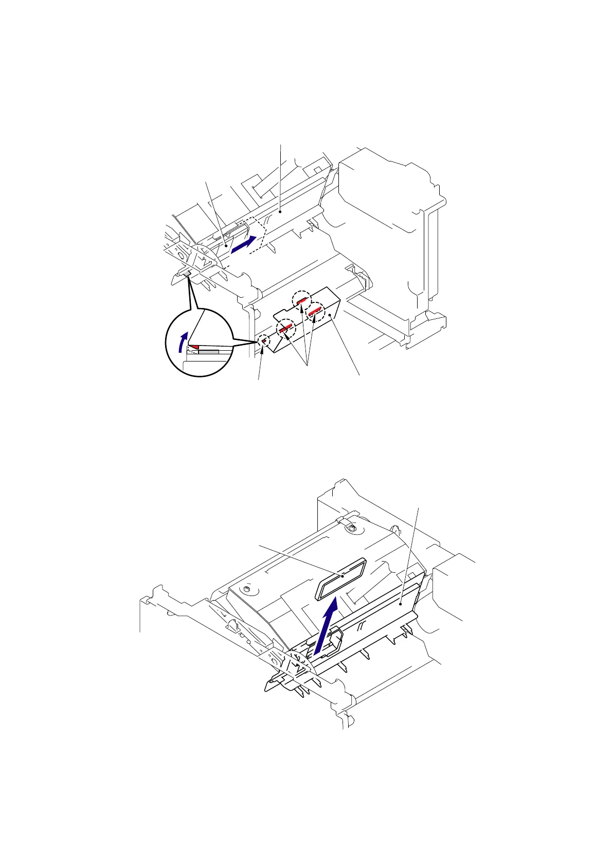 (36) Slide the Sub duct to the direction of the arrow 36b while pressing the three Hooks and
