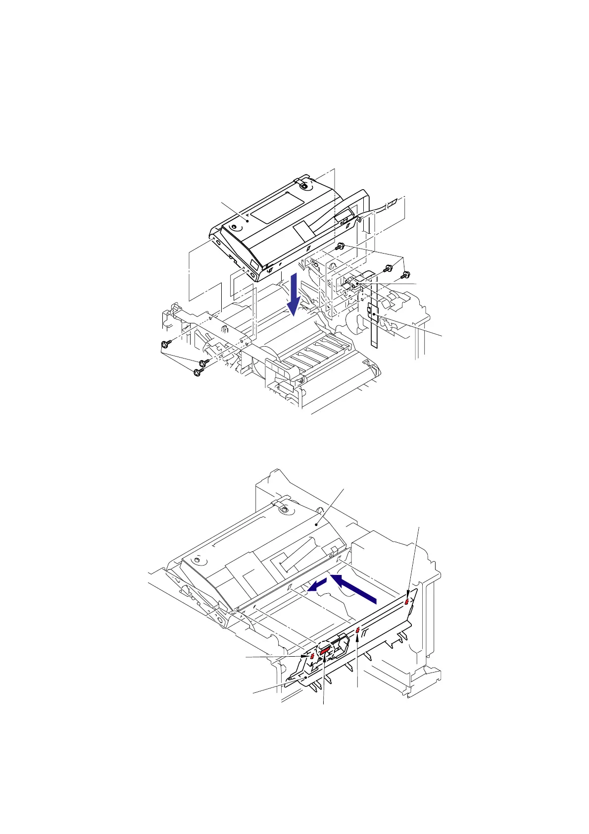 (1) Secure the Laser unit with the six cup S M3x6 Taptite screws.
