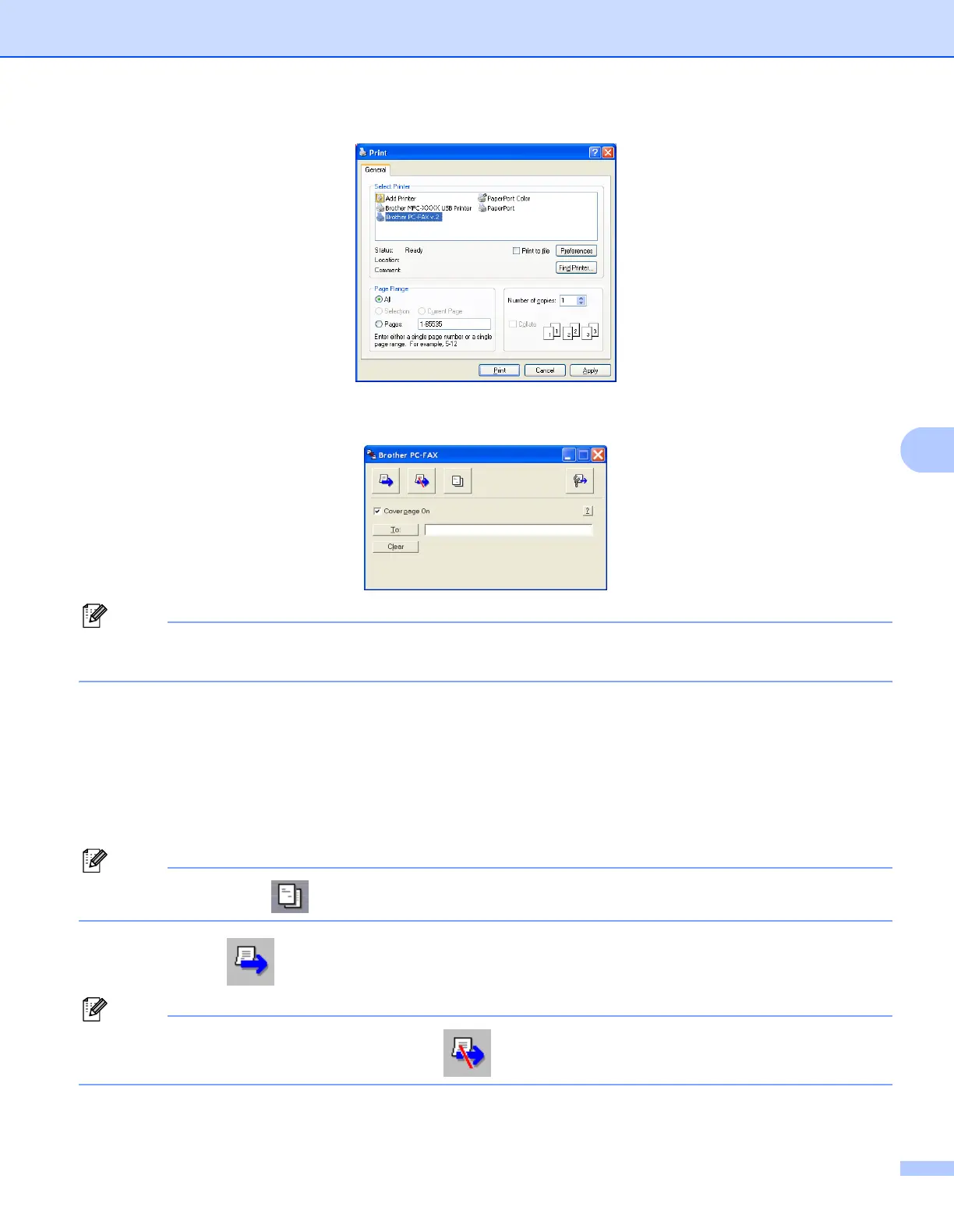 c Choose Brother PC-FAX v.2 as your printer, and then click Print.