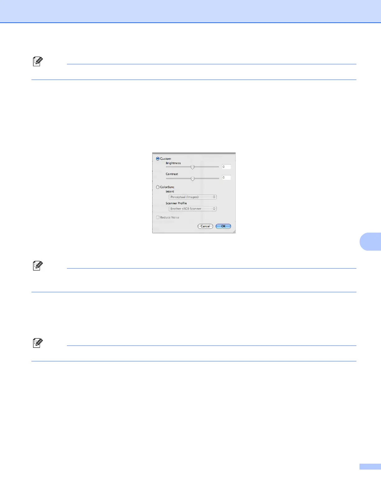 If the image is too dark, set a higher Brightness level and scan the document again.