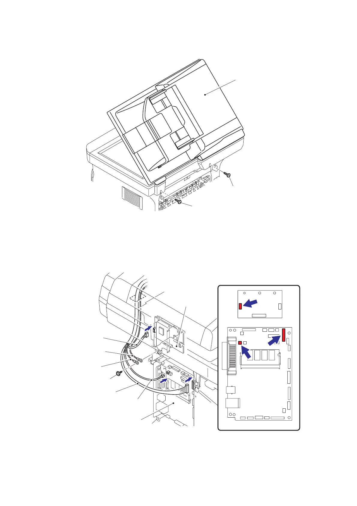 (16) Secure the ADF FG harness and FB FG harness with the cup S M3x6 Taptite screw.