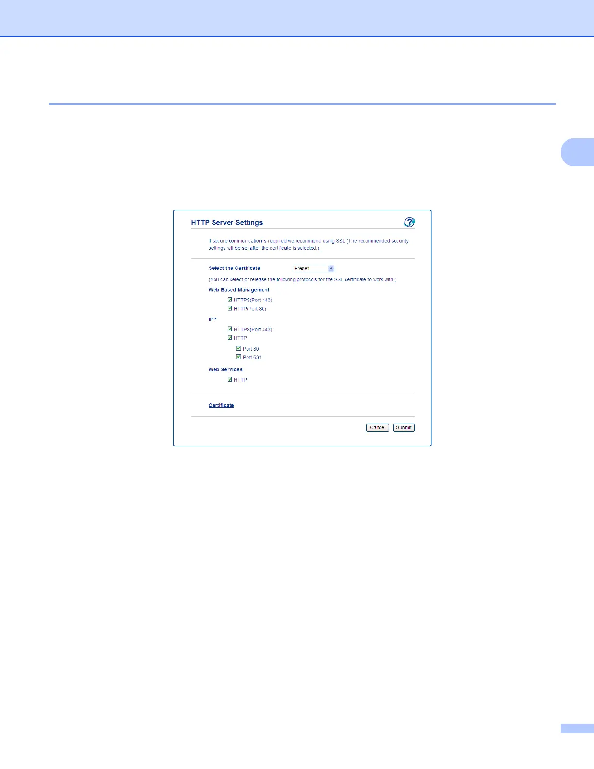 c Click HTTP Server Settings and then choose the certificate from the Select the Certificate pull-down
