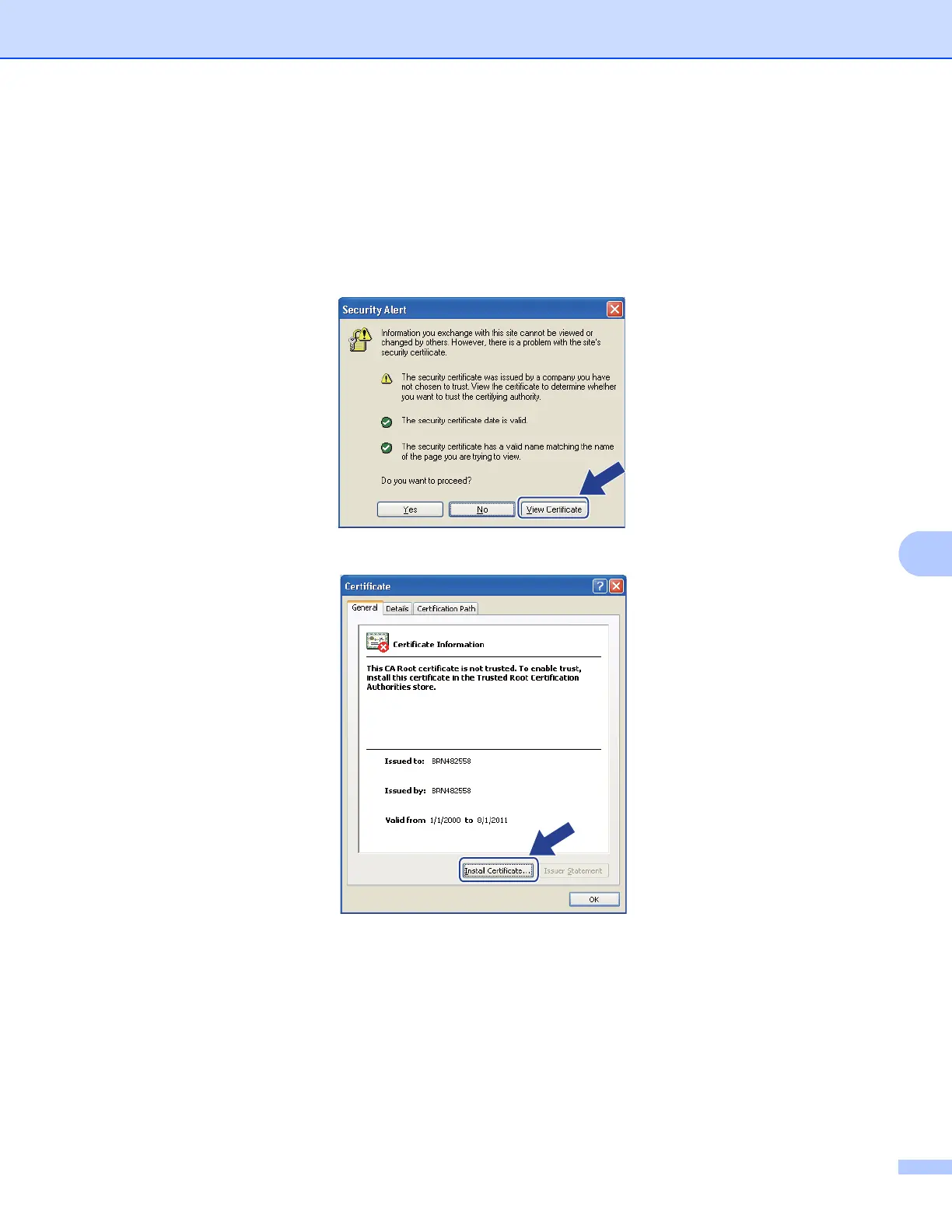 c When the following dialog appears, click View Certificate.