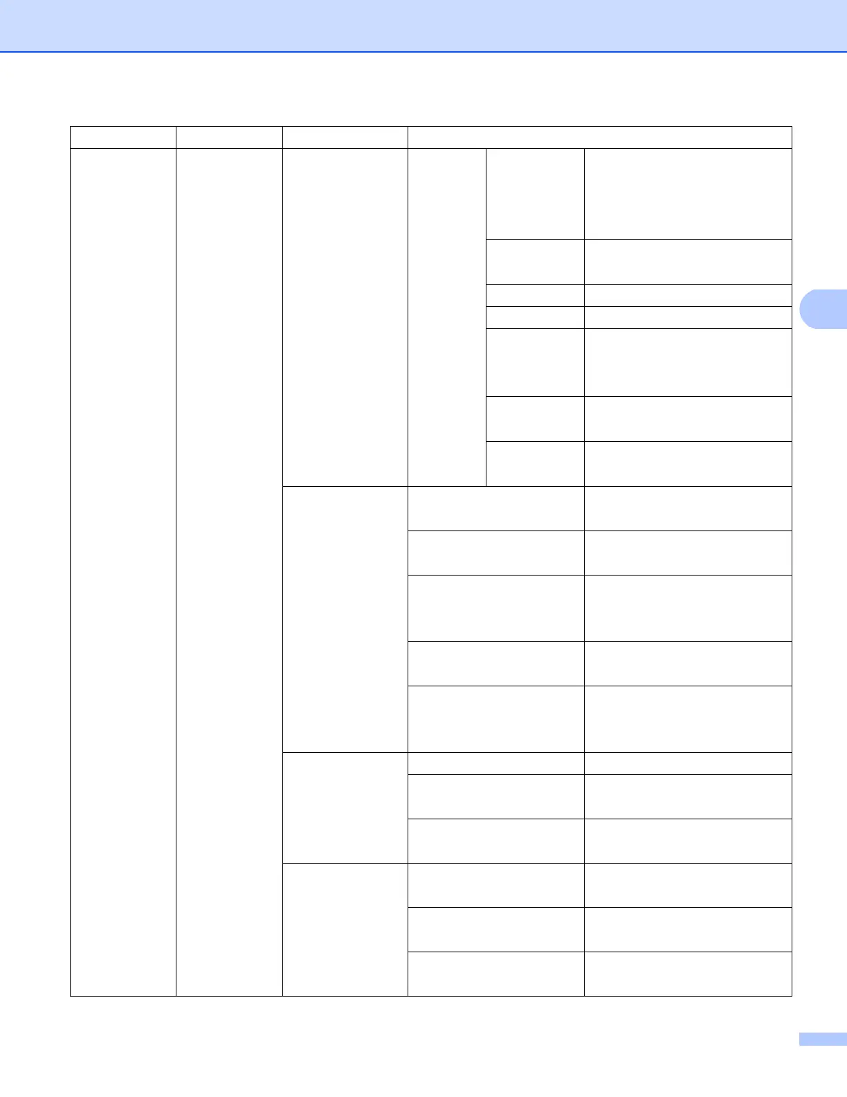 Main menu Submenu Menu selections Options