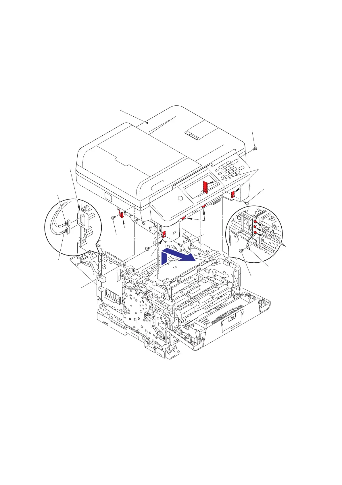 (11) Remove the four taptite bind B M4x12 screws and the taptite cup S M3x8 SR screw.