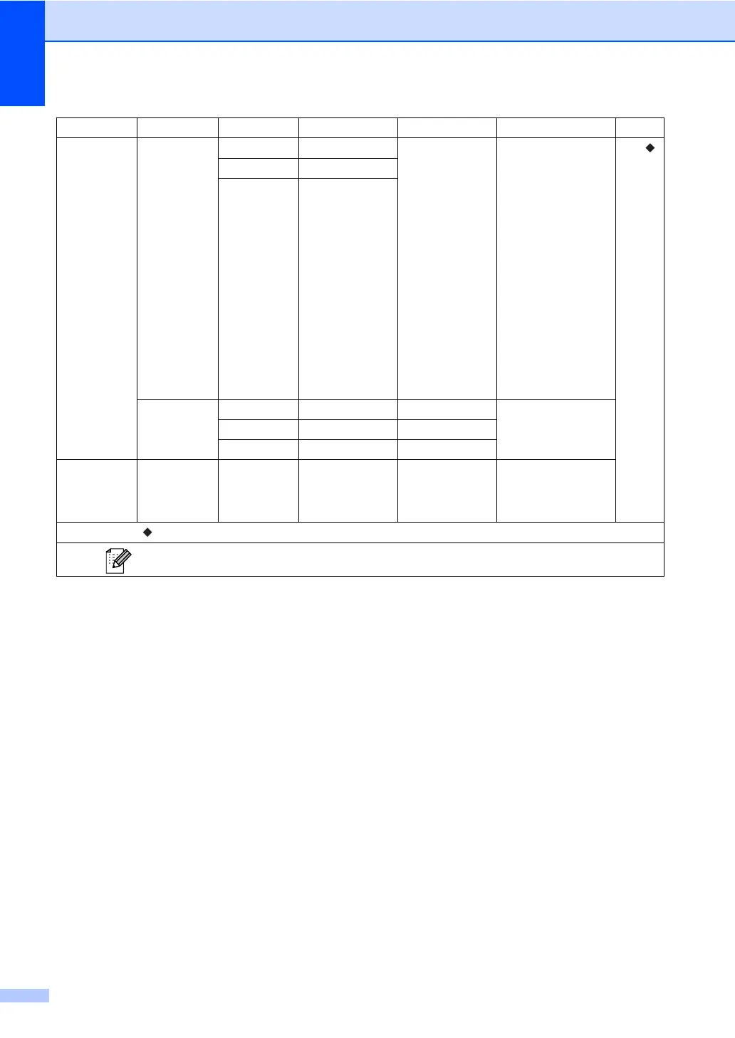 The factory settings are shown in Bold with an asterisk.