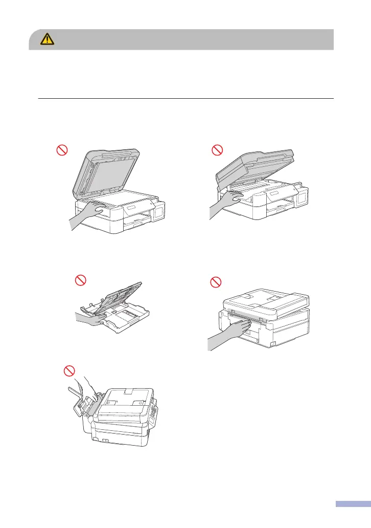 To prevent injuries, be careful not to put your fingers in the areas shown