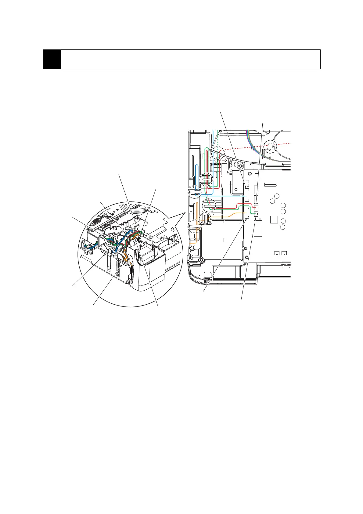 Lower cover upper left side: PF/Registration sensor harness ASSY, Power supply harness,