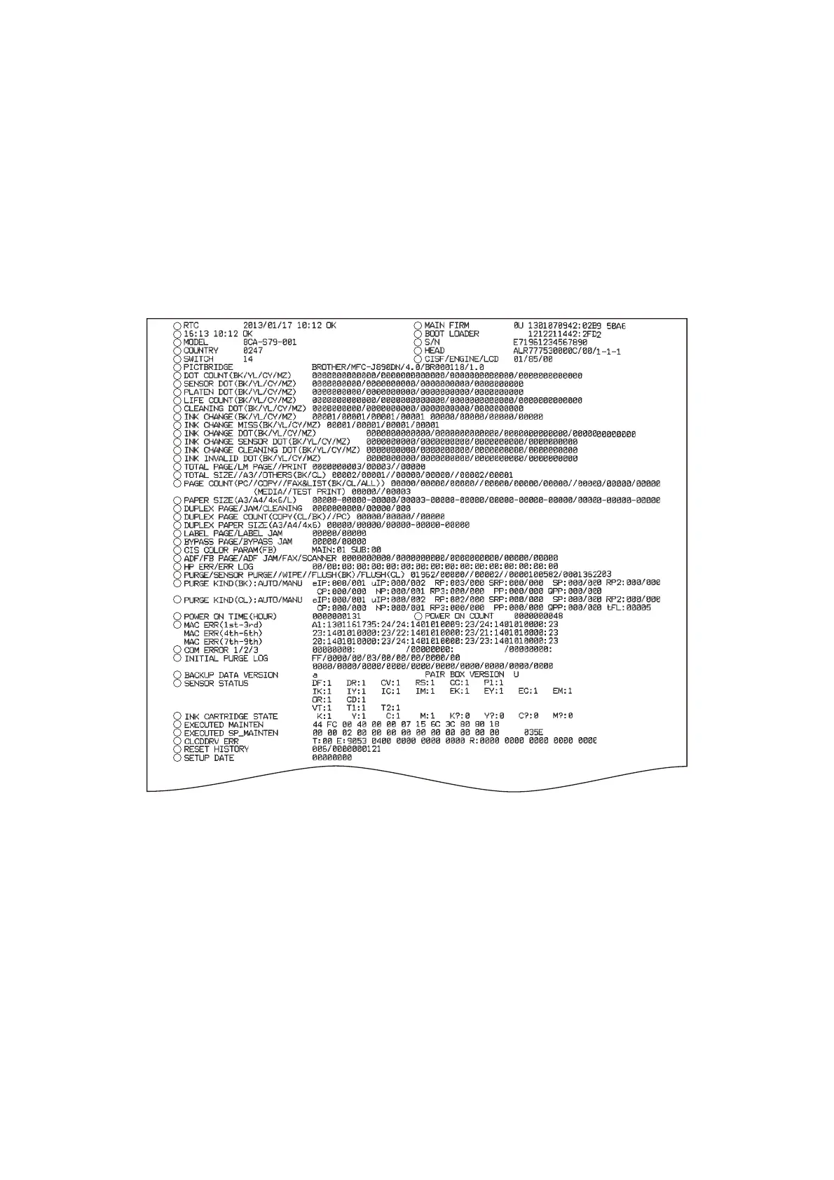 The machine starts printing out the maintenance information.