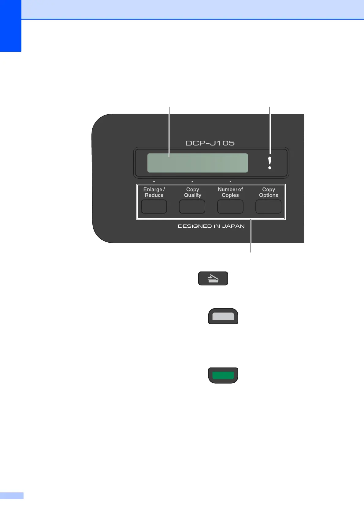 The DCP-J100 and DCP-J105 have the same control panel keys.