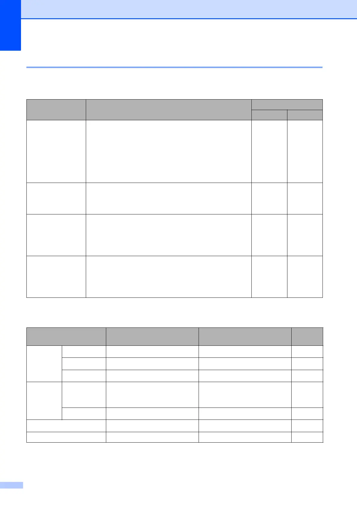 Paper type and size for each operation 2