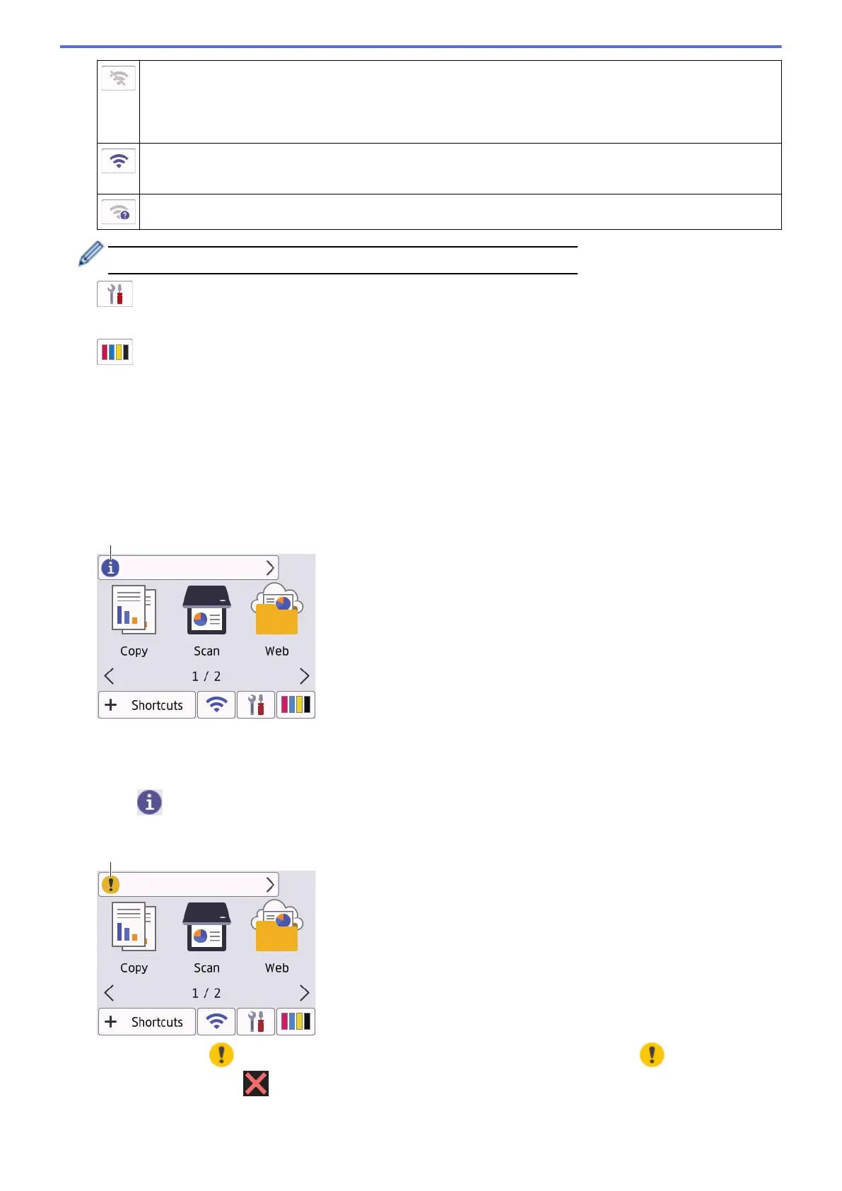 When an ink cartridge is near the end of its life or having a problem, an error icon is displayed on the ink
