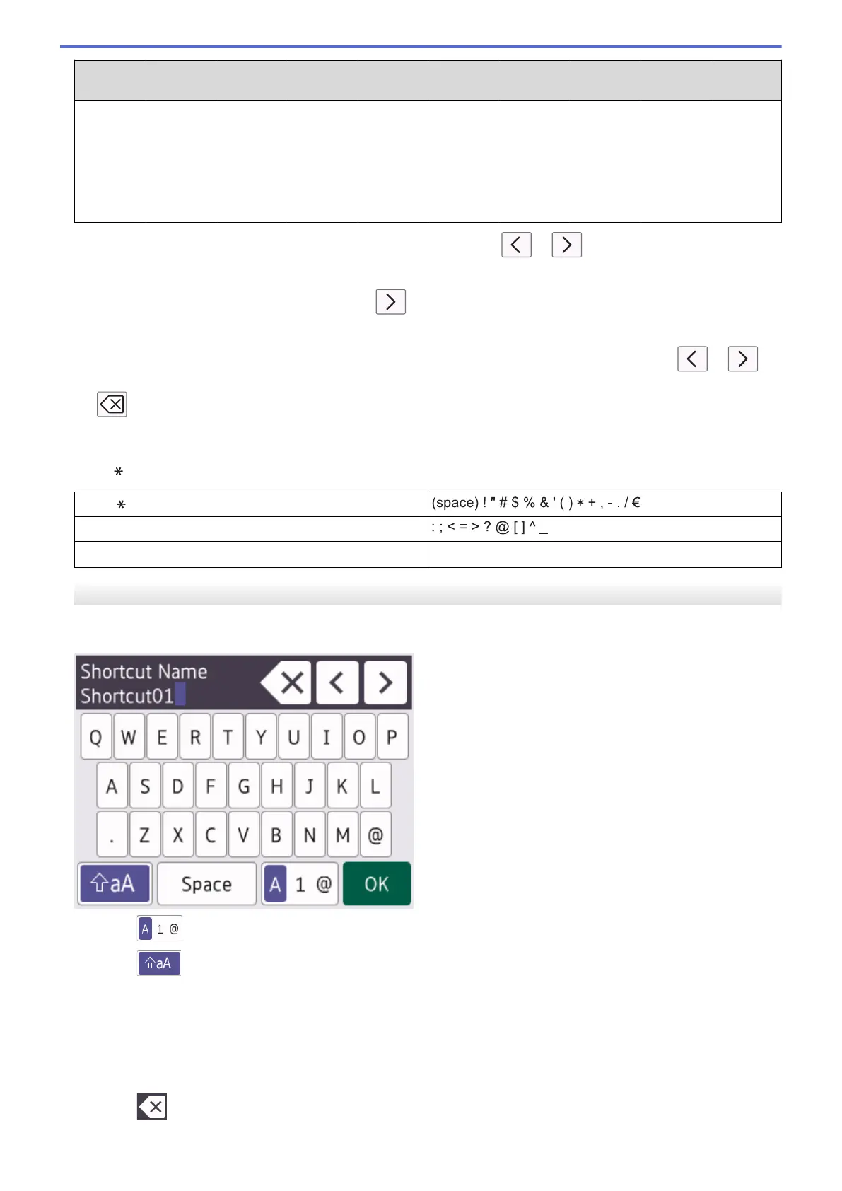 When you need to enter text on your Brother machine, a keyboard will appear on the touchscreen.