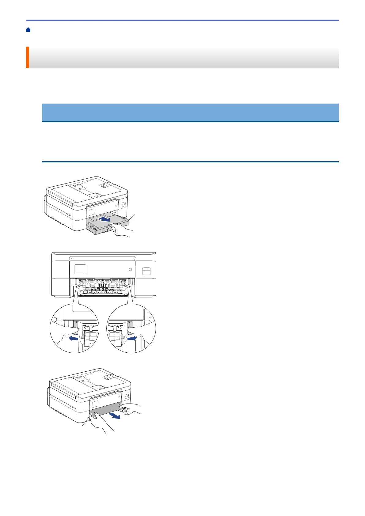 Home > Troubleshooting > Printer Jam or Paper Jam > Paper is Jammed Inside and in the Front of the