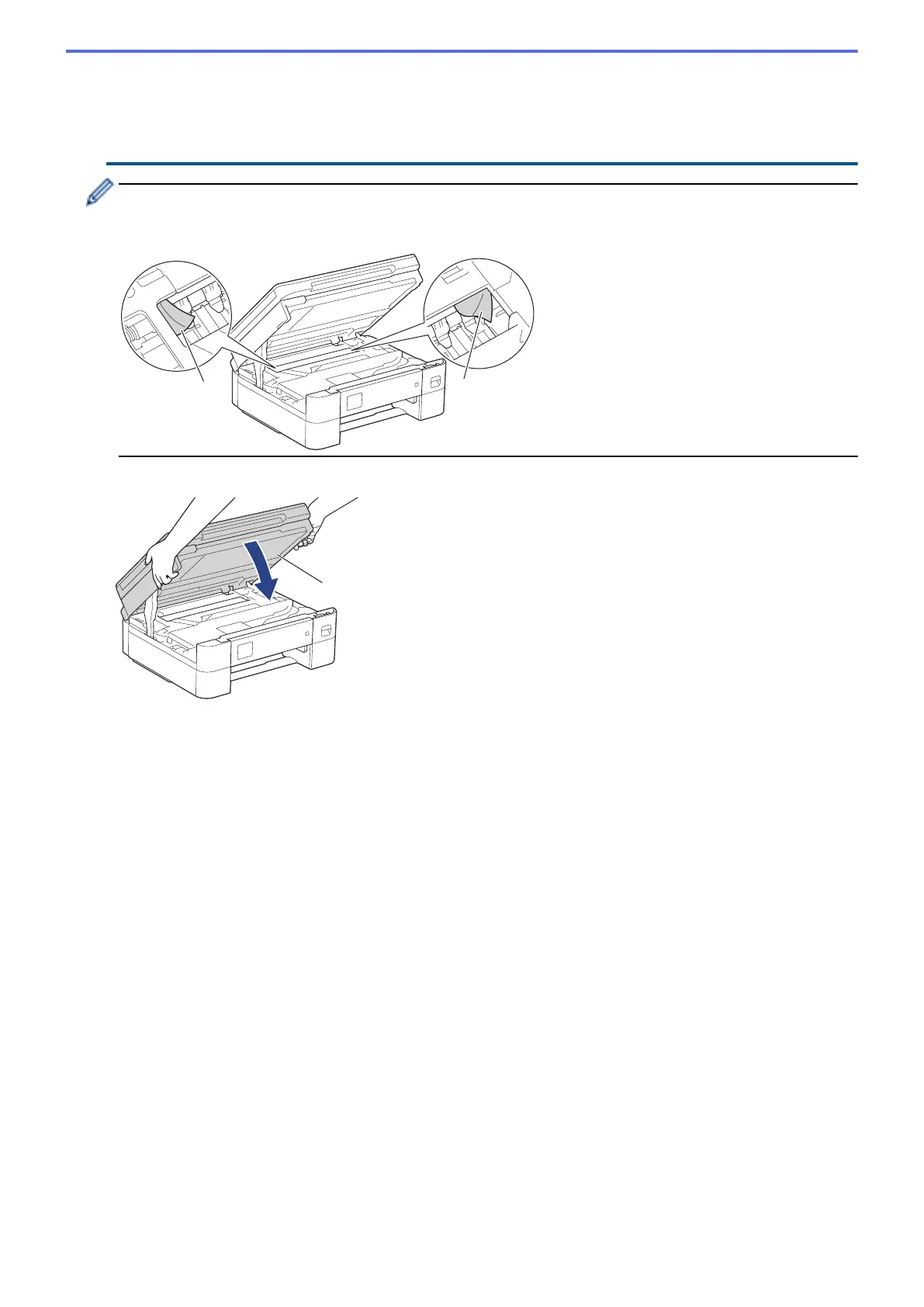 7. Gently close the scanner cover using both hands.