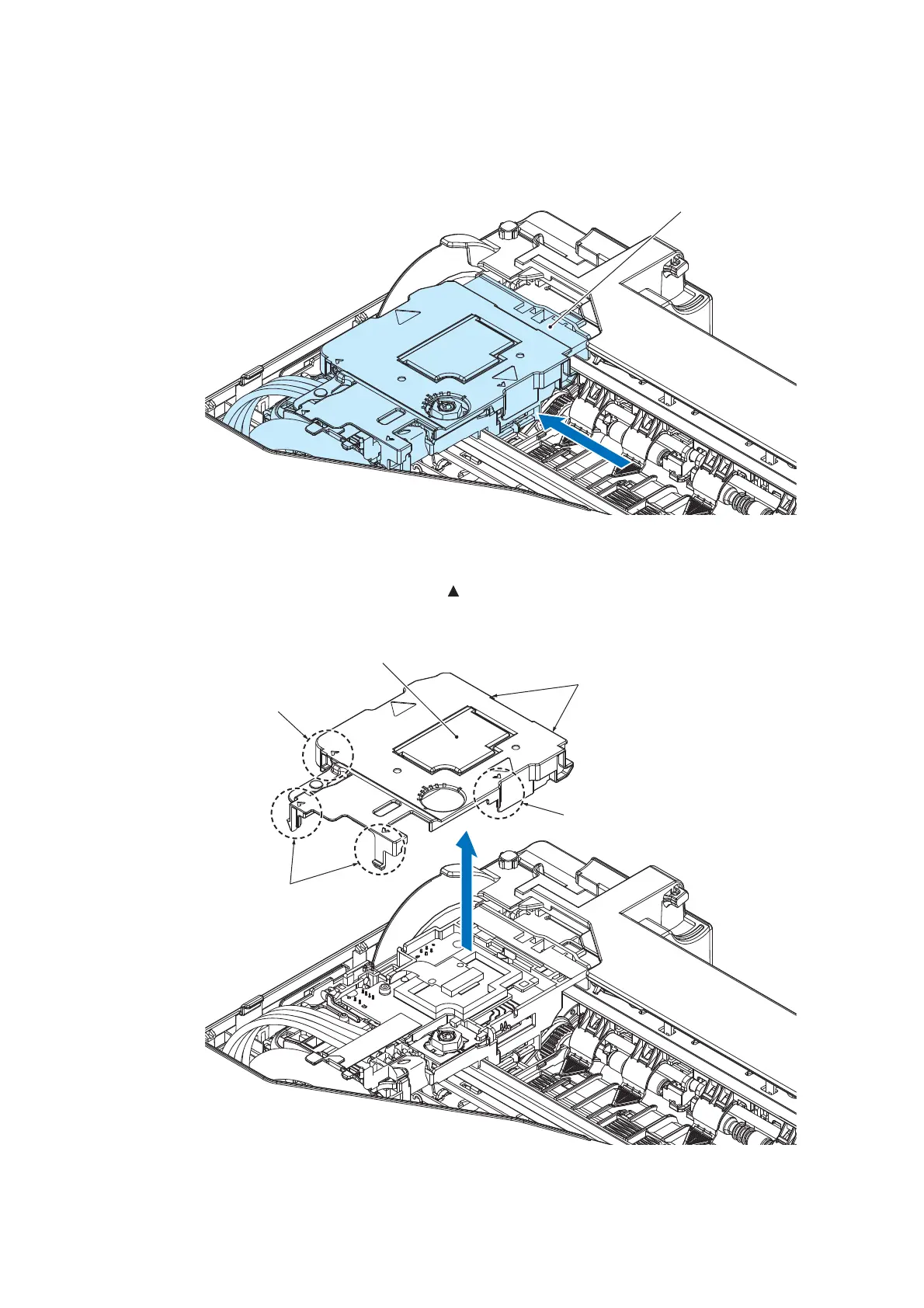 (8) Move the Head/carriage unit to the left end of its travel by hand (to a position where the