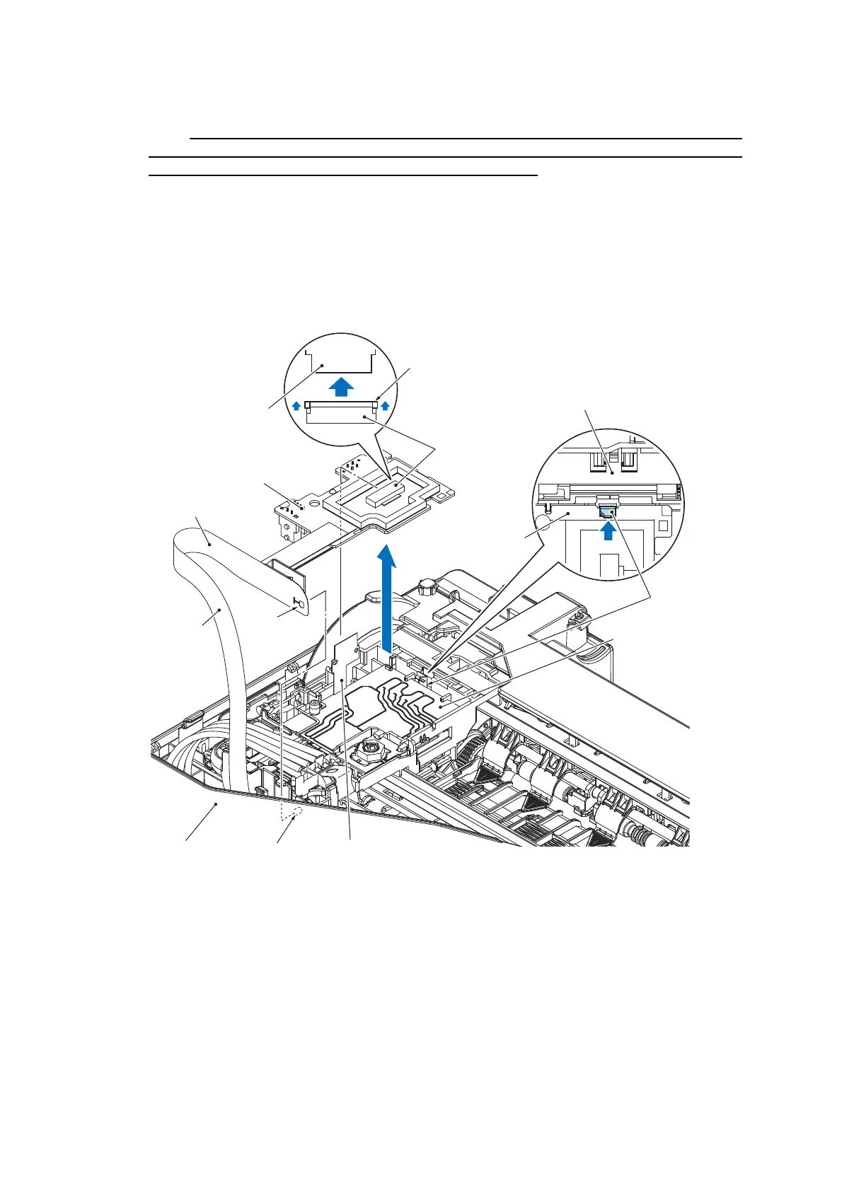 (10)Unlock the connector on the Carriage PCB and disconnect the Head flat cable.