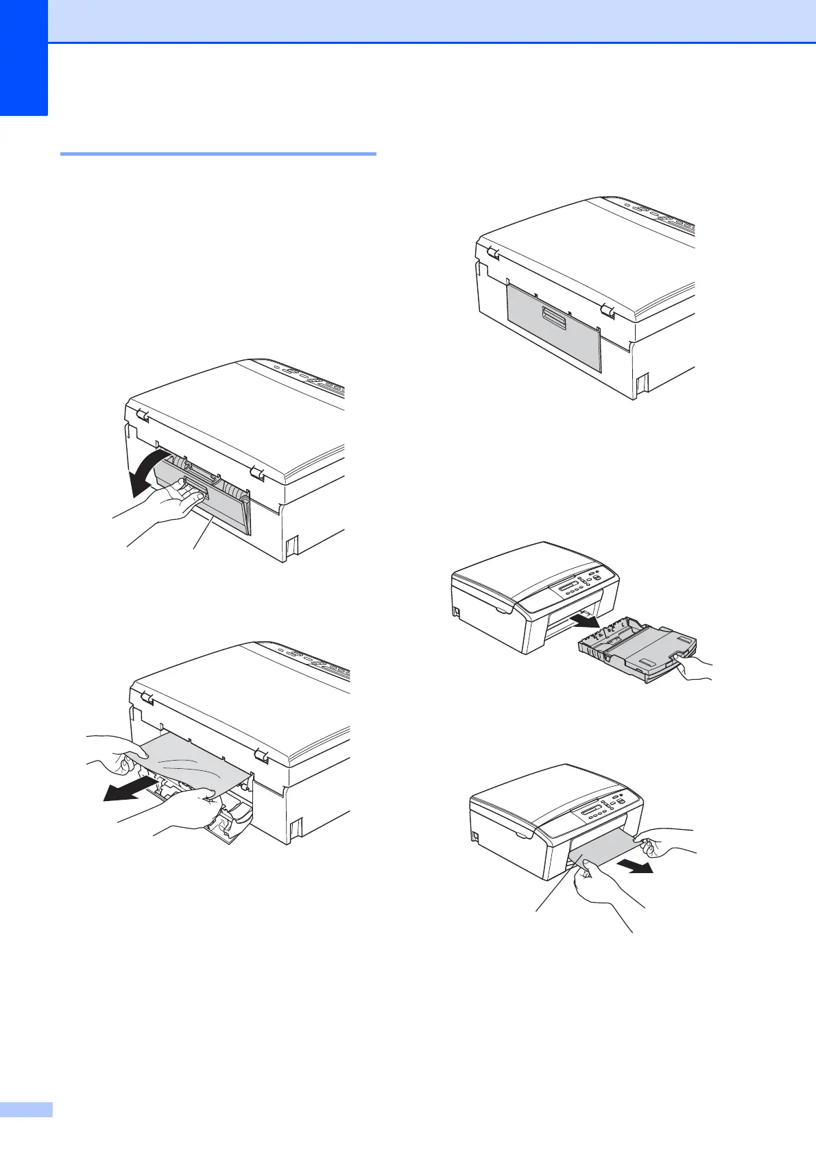 Take out the jammed paper depending on