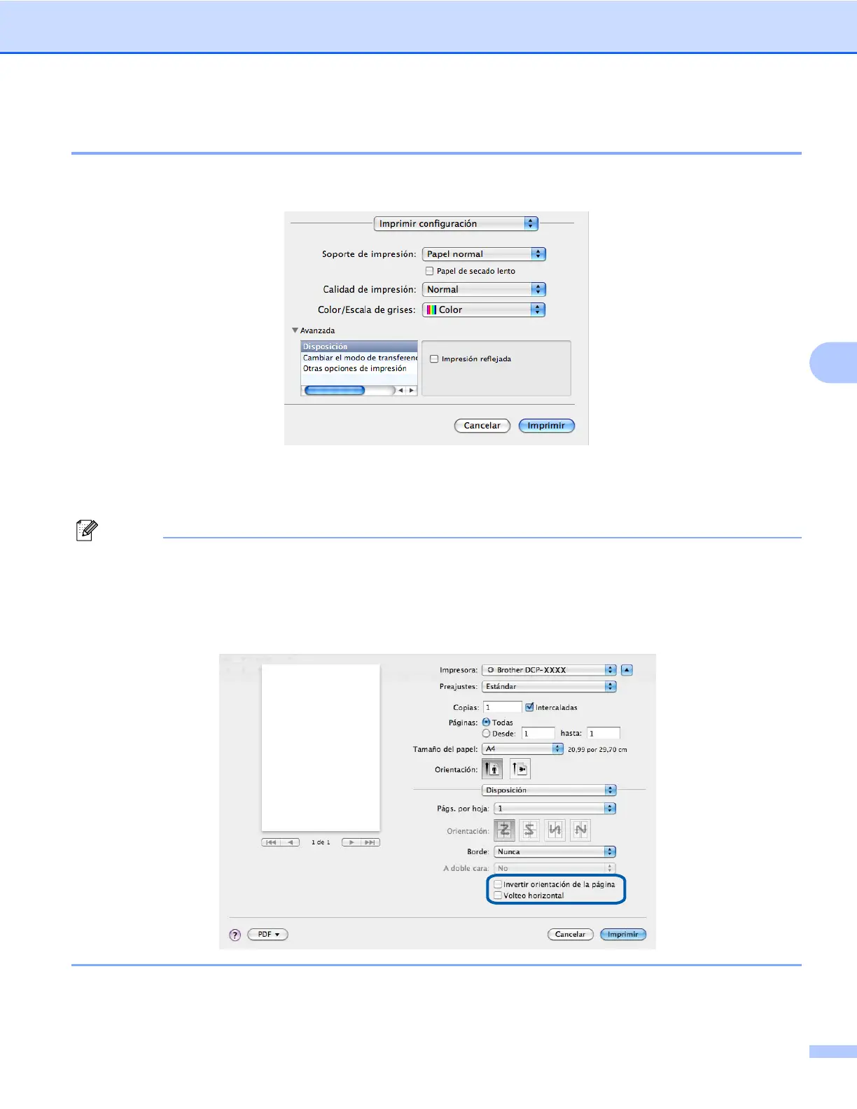 Impresión reflejada no está disponible si selecciona Transparencias como Soporte de impresión.