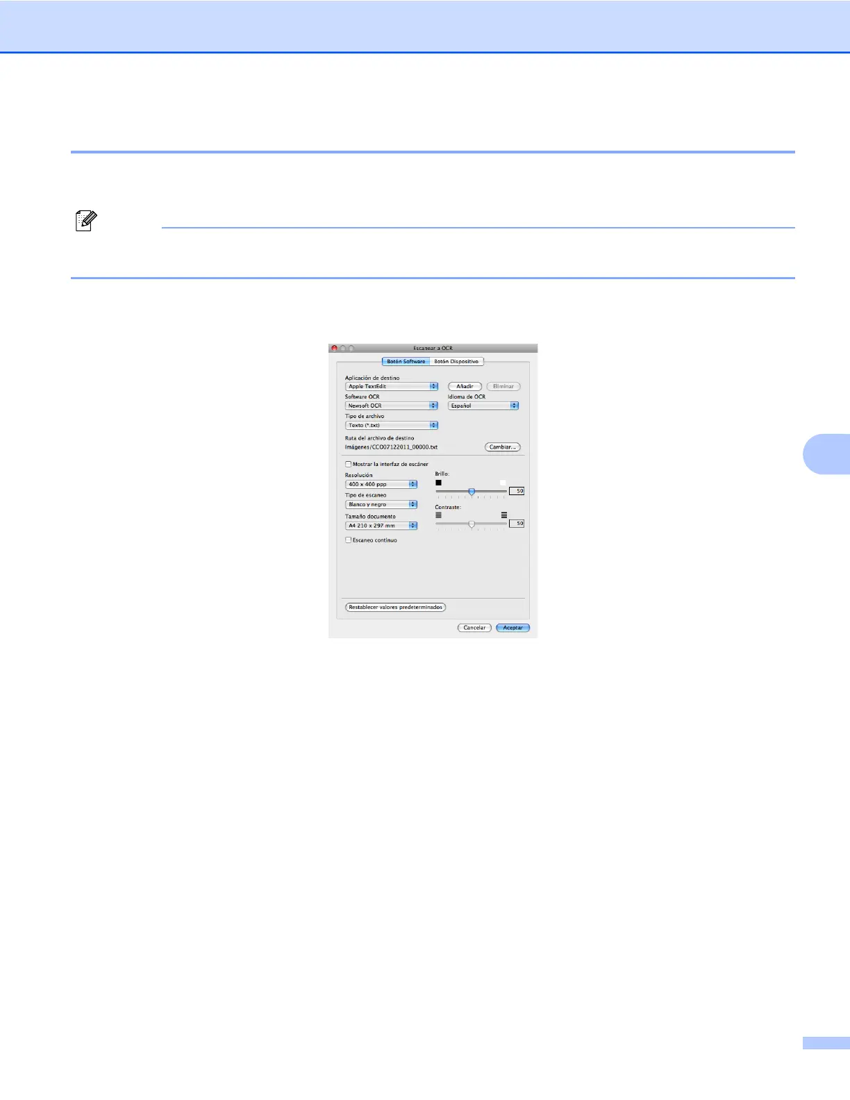 Para configurar Escanear a OCR, haga clic en el botón mientras mantiene pulsada la tecla Ctrl y seleccione