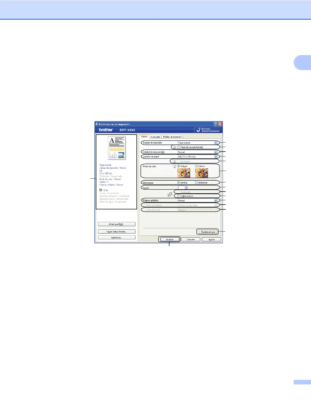 b Seleccione Brother DCP-XXXX Printer (XXXX es el nombre del modelo) y haga clic en Preferencias.
