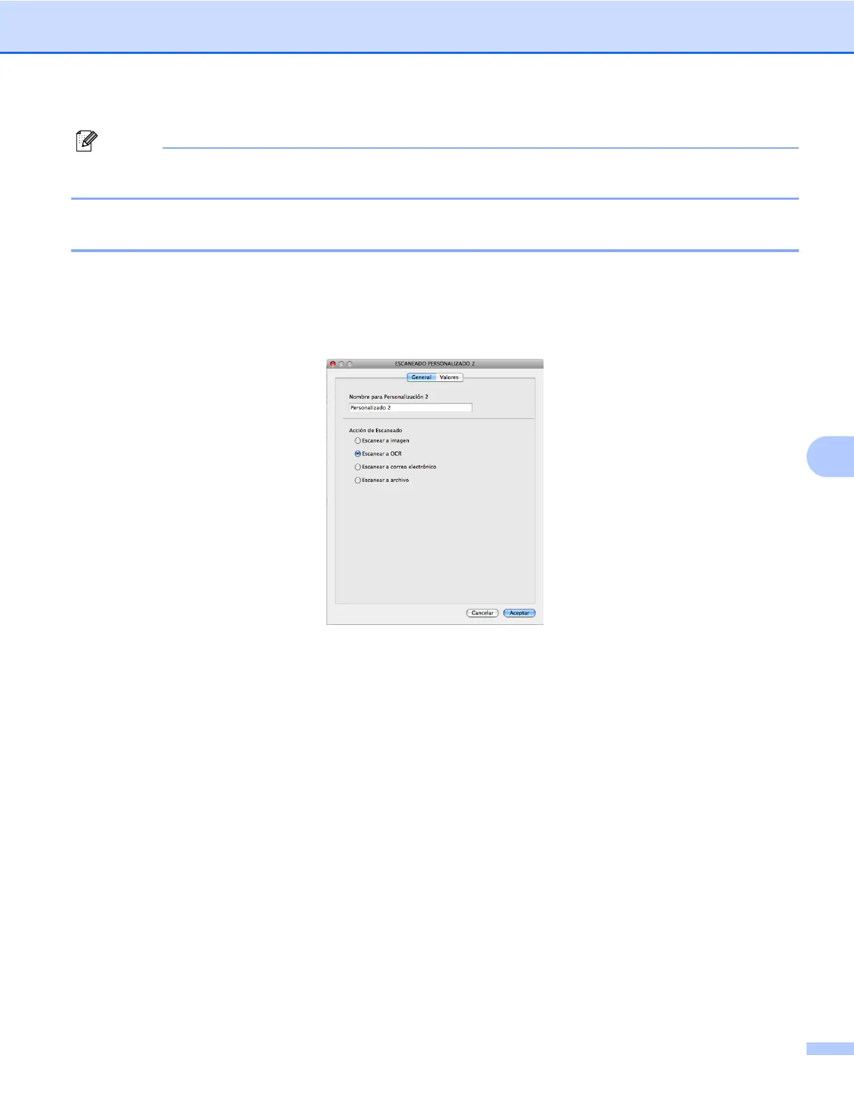 Seleccione el tipo de escaneado en el campo Acción de Escaneado.