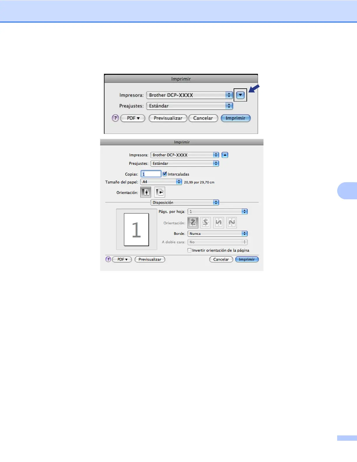 Para más opciones, haga clic en el triángulo situado junto a la lista desplegable Impresora.